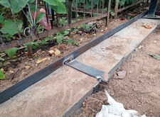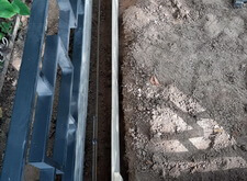 На этом этапе все необходимые работы с оградкой были завершены: она установлена в надёжное бетонное основание, а борта для брусчатки полностью готовы.