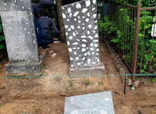 Затем наступил самый ответственный этап работы: монтаж ограждение. Работа по его установке опять-таки заняла достаточно долгое время, однако в результате чего по периметру могилы была установлена достаточно высокая статусная металлическая ограда, сразу же выделяющая место захоронения на фоне других участков. На фотографиях ниже представлен окончательный внешний вид могилы с разных ракурсов на момент завершения работ.