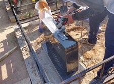 Когда памятник был изготовлен, идём на место захоронения. На данный момент на могиле находится лишь холмик, на котором растут цветы.