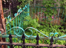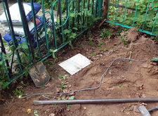 Следующим этапом стала установка ограждения. Уже готовую оградку мы привезли на участок, там собрали и выставили по периметру могилы не укрепляя. Параллельно с монтажом ограждения мы вкопали трубы на месте будущих цветников.