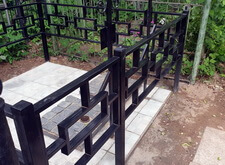 Наша работа над данным местом захоронения окончена: на могиле сформировано наземное покрытие из бетонной плитки, обшарпанная ограда заменена на только что покрашенную оградку с прямоугольным узором, а вместо деревянных табличек установлены траурные кресты.