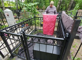 Перекраска небольшой ограды на кладбище