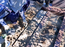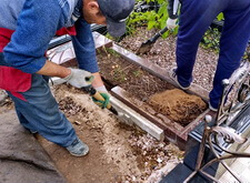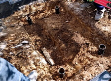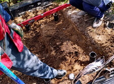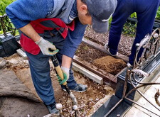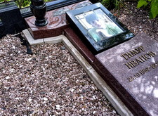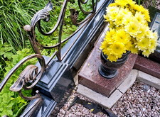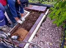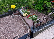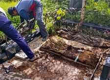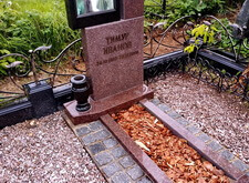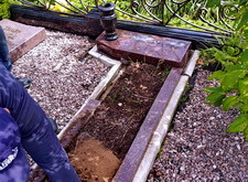 Далее приступаем к установке подставки памятника. После того, как она была возвращена на своё место, размечаем цветник. Параллельно