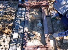 работаем с периметром могилы: по краю пускаем металлическую планку, которая послужит границей брусчатки.