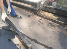 В ходе работ возникло небольшое недопонимание между нами и администрацией кладбища. Нас попросили убрать выступающую на проезжую часть площадь прилежащей территории. Конфликт был урегулирован, мы немного подрезали гранит и положили в образовавшуюся нишу холодный асфальт.
