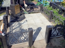 По заказу клиента на данном месте захоронения нам предстояло провести следующие работы: выложить территорию участка бетонной плиткой, а также установить саркофаг для урн с прахом усопших. Приехав на кладбище в первый раз, мы застали небольшой участок в довольно-таки неряшливом состоянии – вся территория могилы заросла сорной травой.