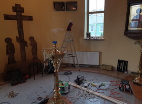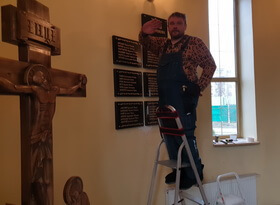 В день монтажа мы доставили готовые таблички в храм, предварительно сняв со стены висевшую там мраморную доску.