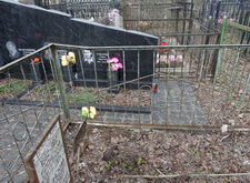 Уборка на уже знакомой нам по другим отчетам могиле. Уборка проводилась глубокой осенью. Состояние загрязненности могилы по сравнению с соседними очень приличное.
