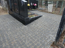 Нам пришлось оттереть разводы на граните и помыть его, подмести пол из брусчатки, возложить цветы, убрать сор из зон цветников.