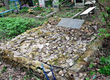 В этом заказе мы столкнулись с весьма оригинальным оформлением могилы: как таковой памятник заменяла надгробная плита с именами покойных, а территория участка была покрыта хаотично уложенными камнями. Уборка на месте захоронения была достаточно давно, и могила густо поросла сорняком.