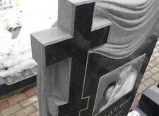 Мы изготовили саму гранитную плиту, вырезав фигуру православного креста и траурное покрыло.