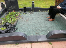Сначала мы разобрали всё, что было на могиле: демонтировали памятник, сняли гранитный цоколь, разломали бетон.